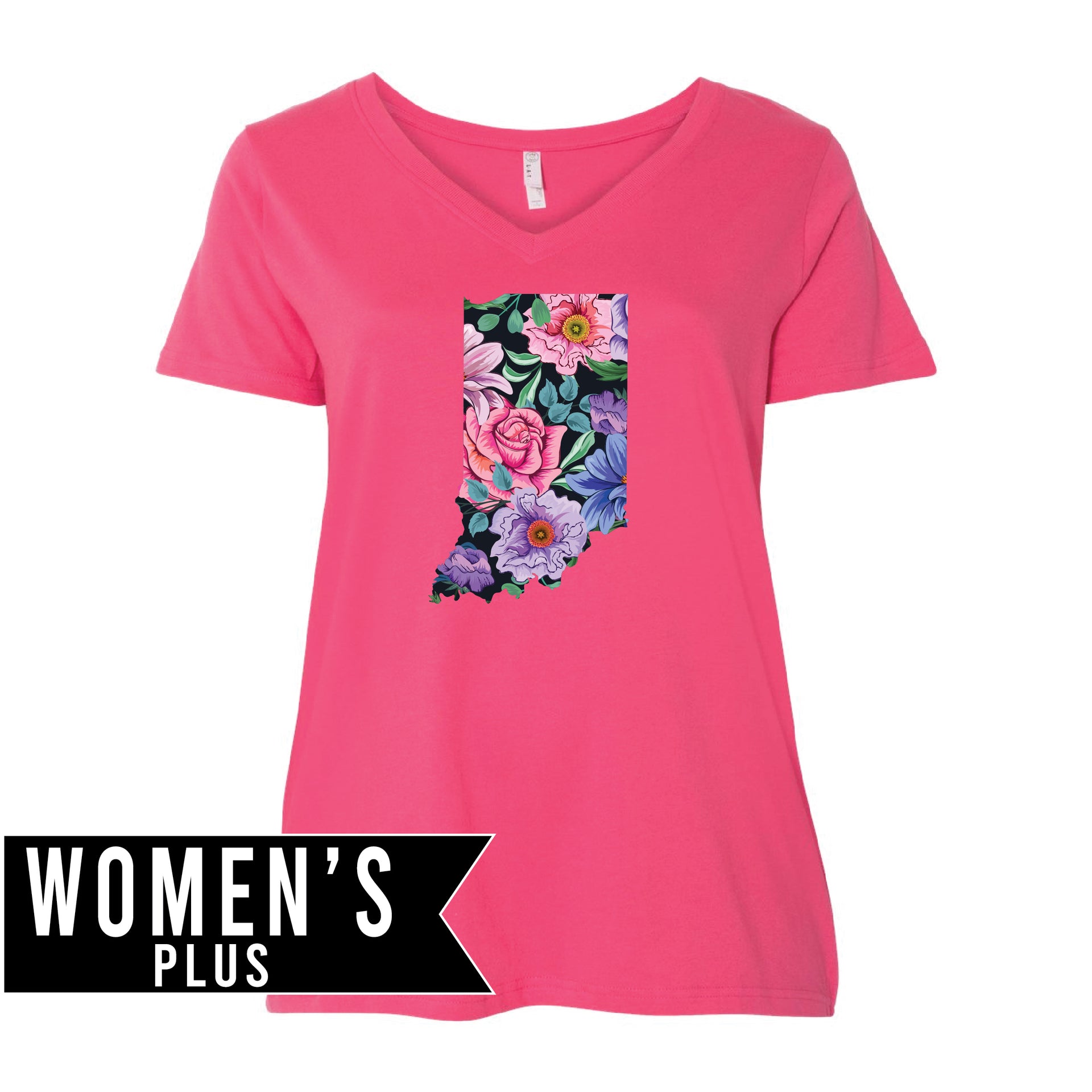 Plus Size Women's Premium Jersey V-Neck Tee - Floral Indiana
